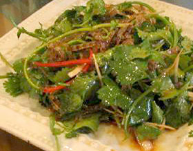 椒油蒜泥鱼皮:'1.将油锅烧热,投入花椒,炸出香味,捞出花椒不要,花椒油留用;大蒜去皮洗净捣成蒜泥;香菜择洗干净,切成段。2.鱼皮(鲮鱼皮)用开水烫出,晾过,切...