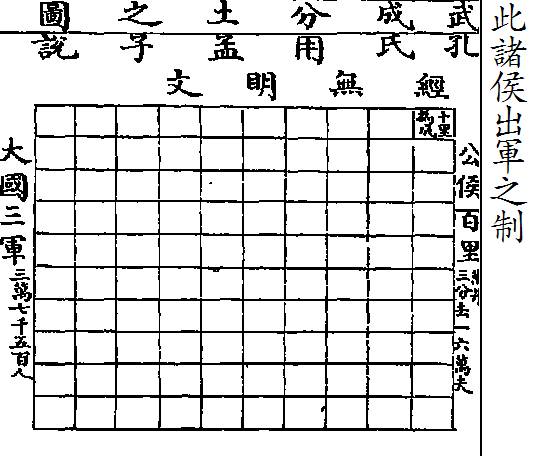 如《司马法》,方七百里出革车几五千乘。《诗》云:"锡之山川,土田附庸。"然则七百里盖包山川、土田、附庸言之,车止千乘,则犹大国之制。(见书3178页)