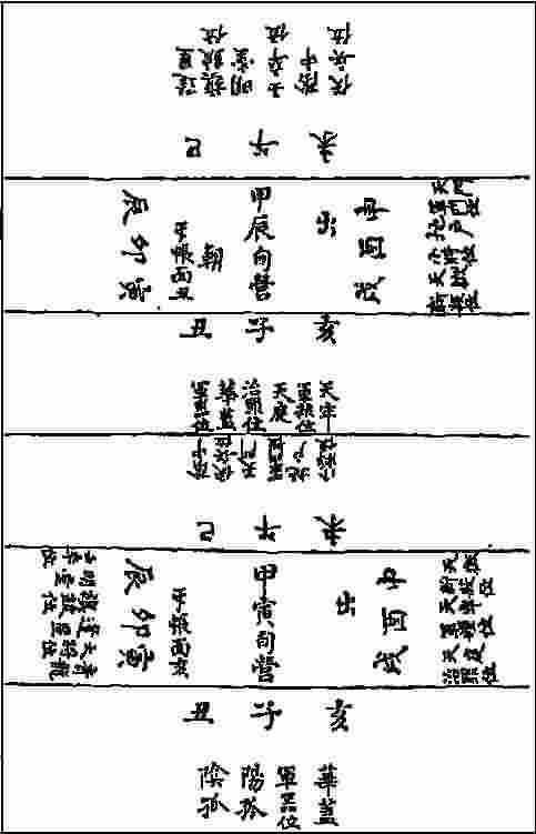 甲为青龙大将住,出呼门户解领行,门神名号徐仪直,户神孙齐甲子神,乙下蓬星鼓角过,丙下明堂士卒亨,丁下大阴伏兵利,戊下天门师入行,己下神户小将位,齐众斩断天狱庚,治罪判断天庭卒,囚系粮储天牢壬,癸下天仓安库藏,又为华盖敌避兵。