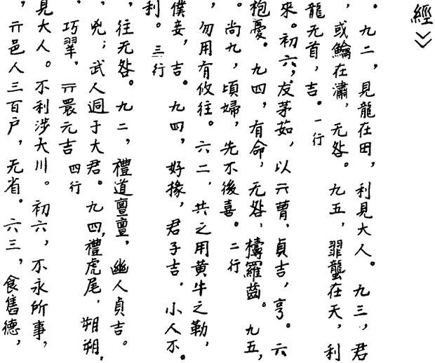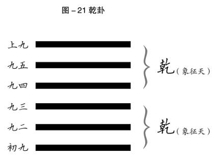 《周易》乾、坤两卦之下的文字比其他各卦都多,也正说明了这两卦的重要。乾卦内容如下: