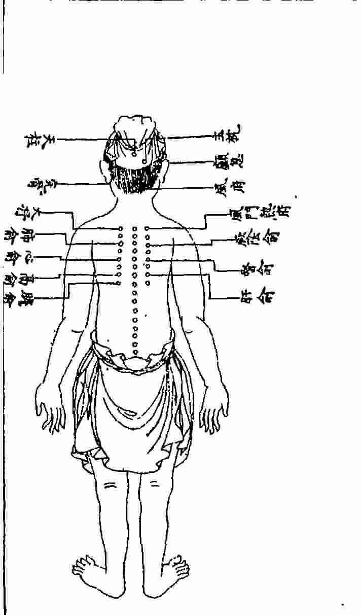 筋縮一穴,在第九椎節下間,俛而取之。督脉氣所發。主驚、癎,狂走癲疾,脊急强、目轉上垂。灸三壯。針入五分。